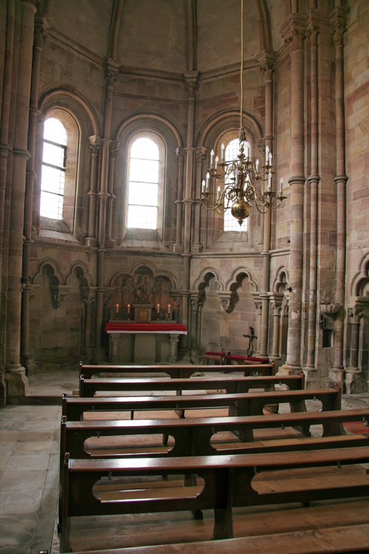 Blick in die spätromanische Apsis, die um 1220 begonnen wurde. Seit Auflösung des Simultaneums mit der ev. Kirchengemeinde im frühen 20. Jh. wird dieser ehrwürdigste Raum der Klosteranlage als Werktagskirche und für kleinere Gottesdienste genutzt.